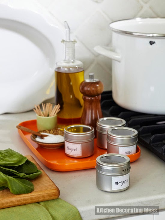Spice storage ideas: If you are going to cook, remove the spices that you need and put them on the tray , which in turn place next to the place where you cook – near the stove or on the kitchen island. With everything at your fingertips, you do not have to run around the kitchen to get spices.