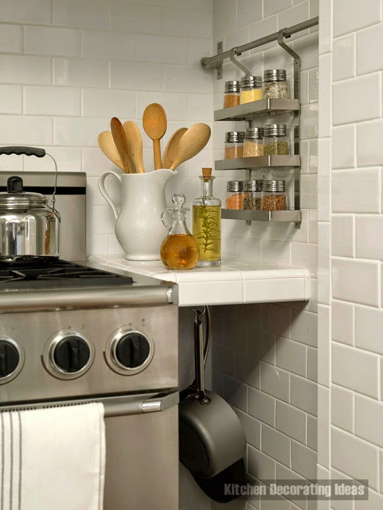 Tiered rack for spices storage can be attached to the work surface in the vicinity near the stove. This arrangement certainly spices release at least one shelf in the kitchen.