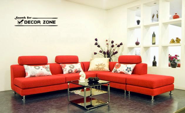 white living room designs with red furniture