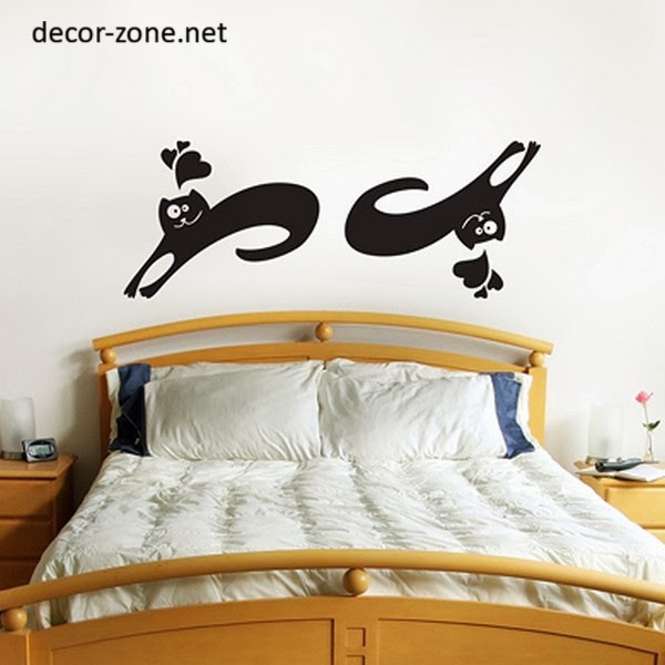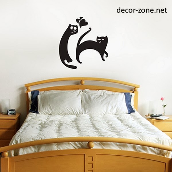 Funny wall stickers of cats on the bed not only raise the spirits, but also serve as a romantic element of the decor of your bedroom.