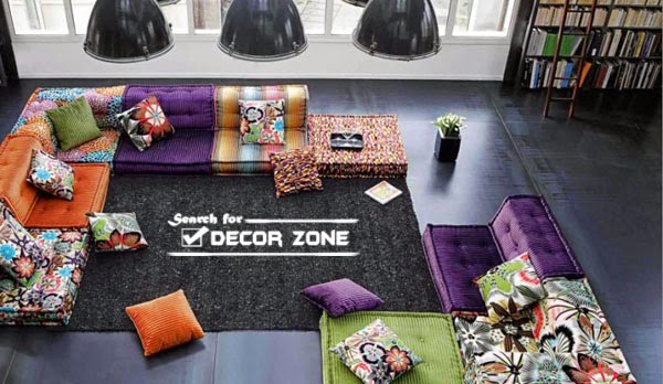 Today, in the living room decorating ideas there is a fashion trend, as the use of elements with strict embroidery or prints – printed pictures. These can be large circles and squares according to the minimalist style.