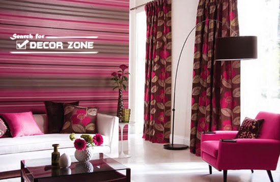 when living room decorating feel free to use purple, blue and cherry tones. With such a design of the walls will look very advantageous light pieces of furniture, gilded frames of the pictures or sculptures.