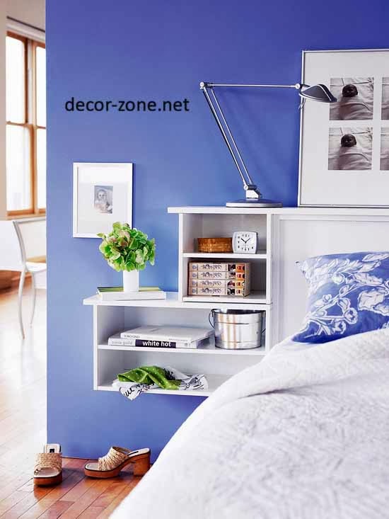 small bedroom storage ideas, bed headboard with shelves