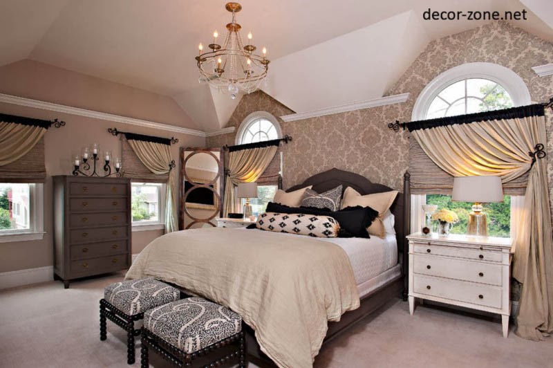 bedroom curtain ideas in the classic style – it is dense, often bilateral curtains, whose mission  to hide the bedroom from prying eyes and not transmit light. However, the aesthetic of their role is important too, because they are part of the interior rooms and designed to create harmony and comfort..