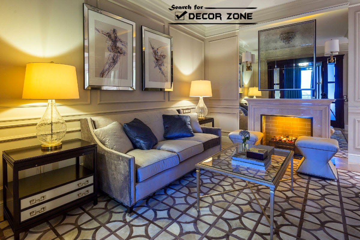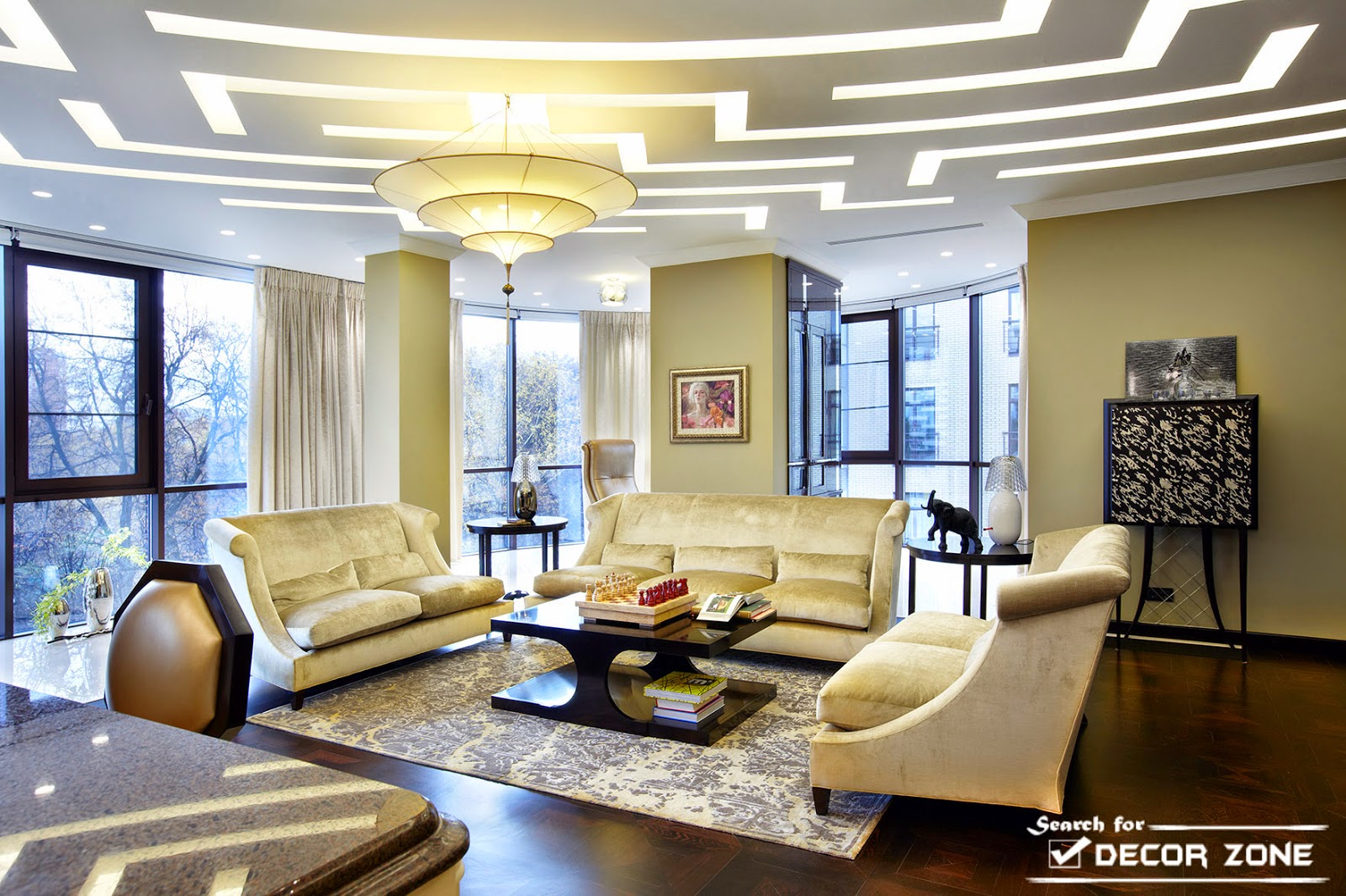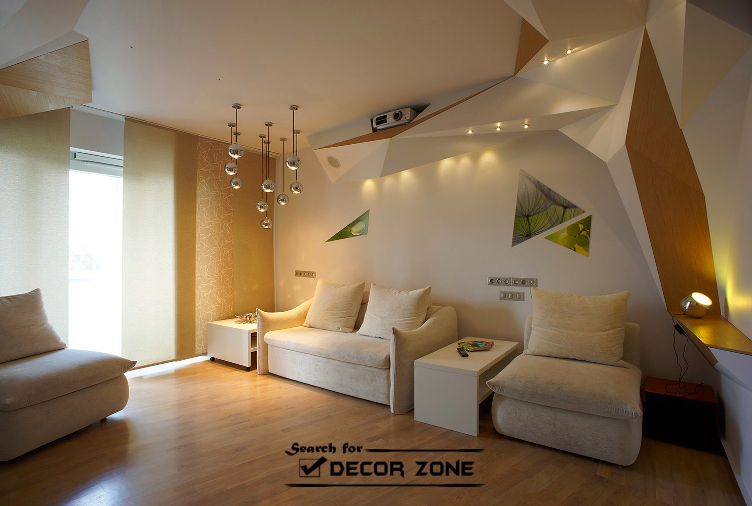 Suitable sculpture, smooth vases, lamps or chandeliers with interesting shape. in contemporary living room you can apply large abstract painting hanging over the sofa. This bright detail on the background of neutral walls will certainly attract attention.