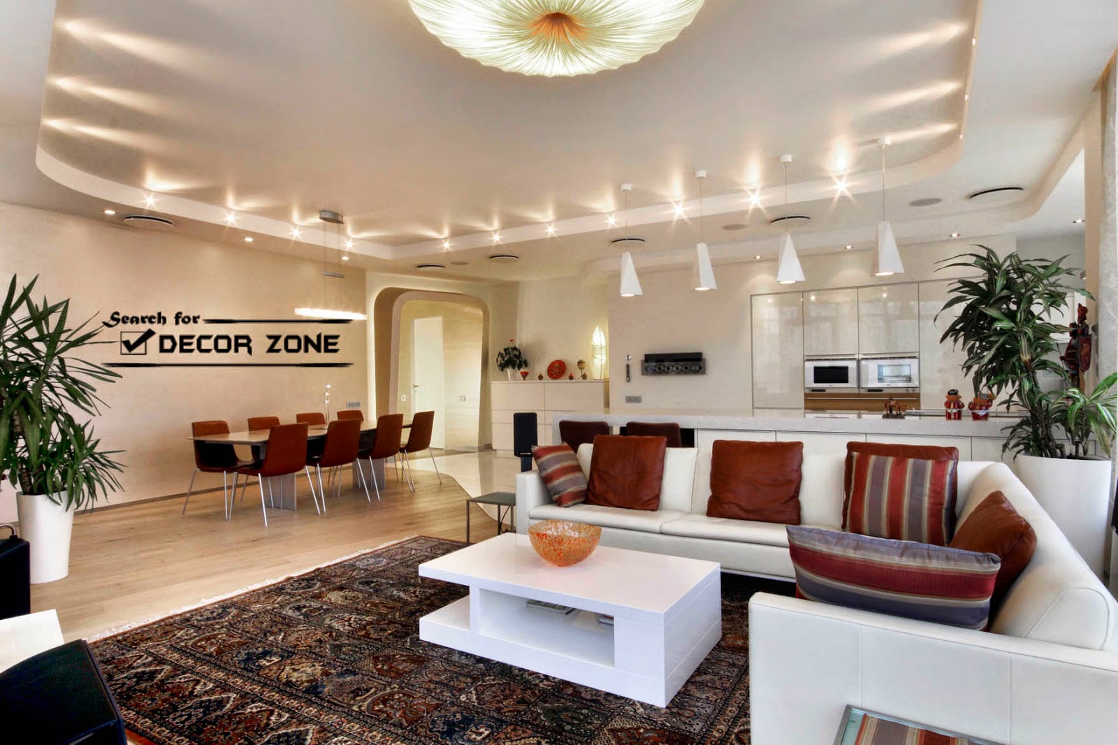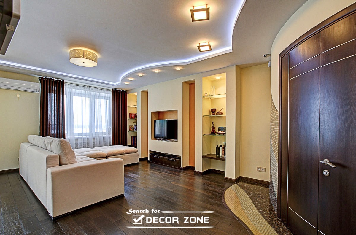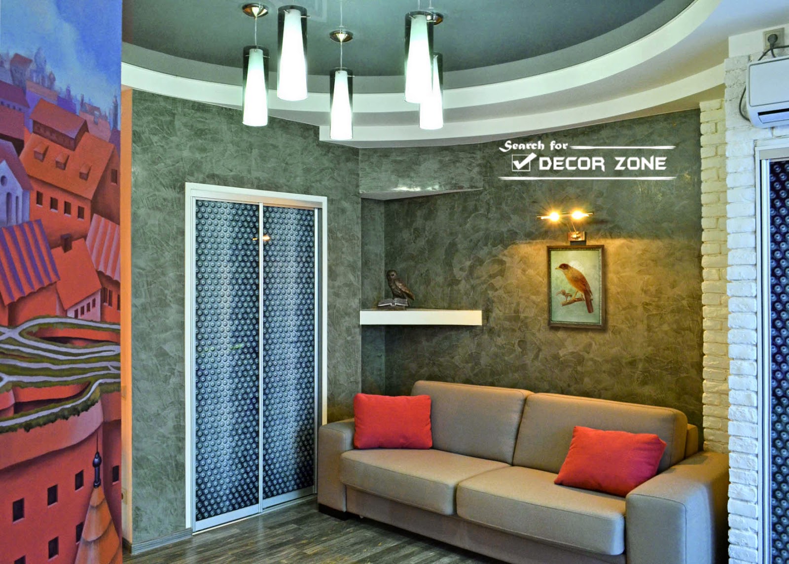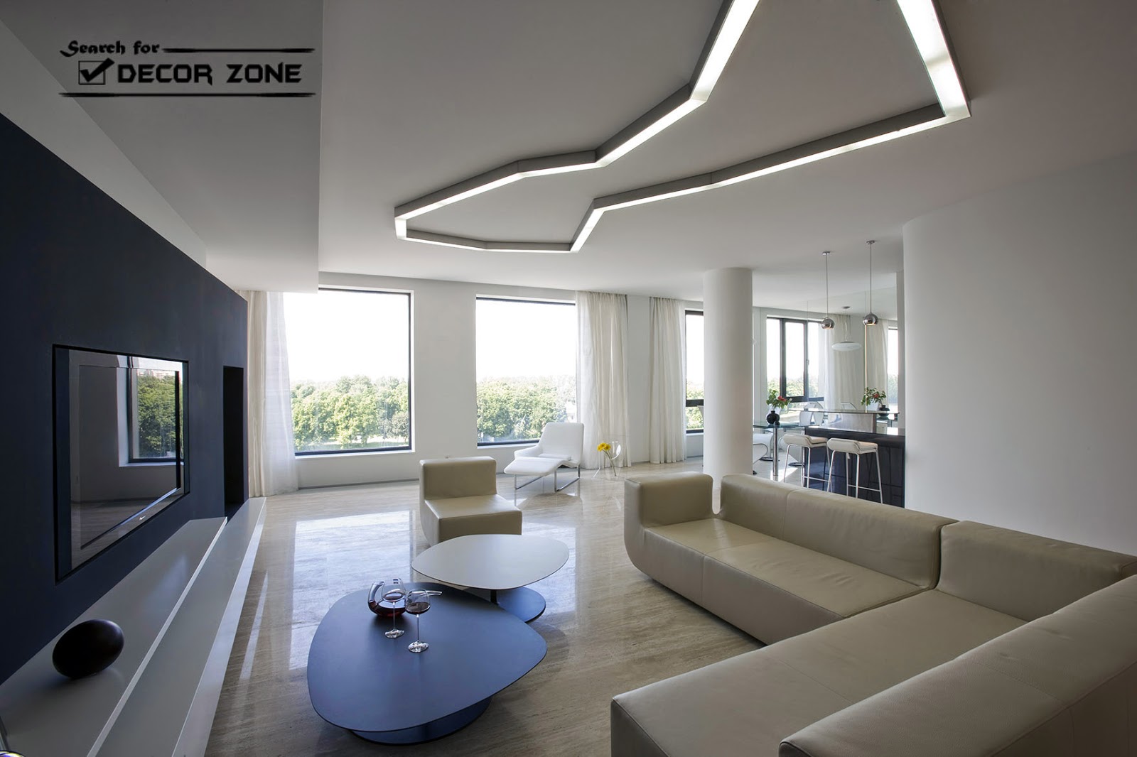 Suitable sculpture, smooth vases, lamps or chandeliers with interesting shape. in contemporary living room you can apply large abstract painting hanging over the sofa. This bright detail on the background of neutral walls will certainly attract attention.