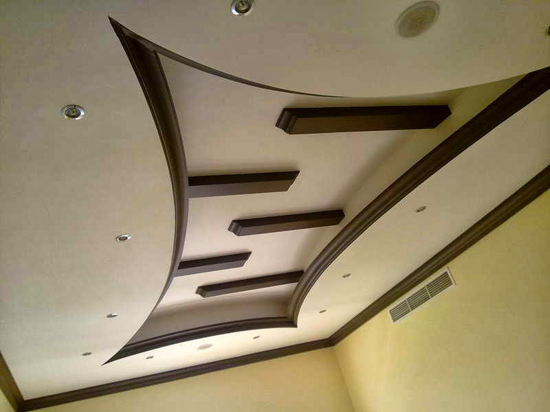 modern false ceiling designs for living room from gypsum and wood , with lights and side lights