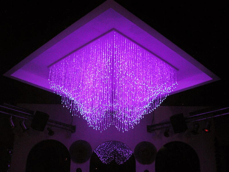 - The simplest design of the first type of lighting provides for the light-framed light rotary filter, to which is attached fibers. Closure fibers – they are “star” – fixed on a certain pattern on a special frame, and thus form a unique star pattern. The intensity of lights, as well as any other visual effects of twinkling and sparkling “stars” are achieved by removing a certain number of LEDs in a single point. To create an even more unusual and realistic effect at the end of each fiber on the front side of ceiling fixed blade cut crystals of various options, which further scatter and refract light rays, creating the effect of three-dimensional images of the sky.