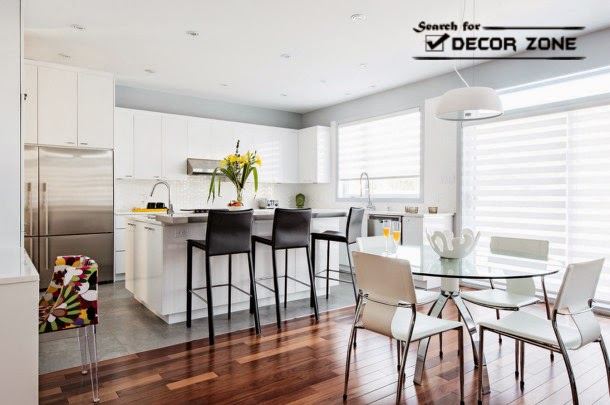 If you prefer more modern materials and the design of your apartment was made in this style, you can use any kitchen bar stools, except classical.