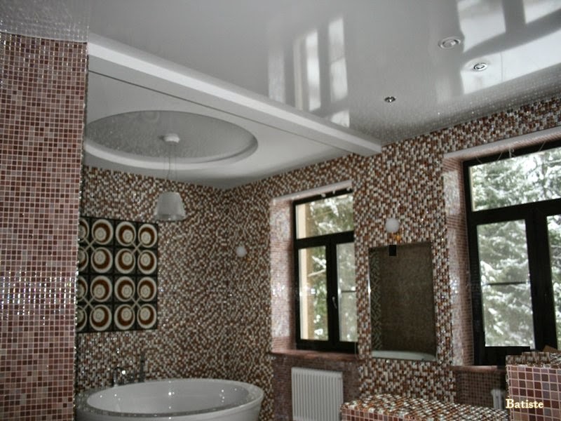 When decorating a bathroom, first of all, attention should be paid to the decoration of the ceiling, because this room has a high level of humidity, and not everyone is a finishing material for this may be appropriate. The surface of the ceiling in the room can have, not only a contact with moist air, but also water.