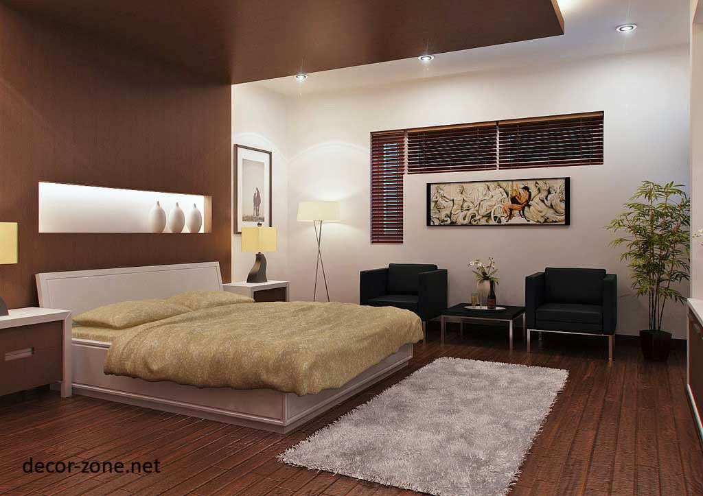 modern bedroom designs with brown false ceiling designs