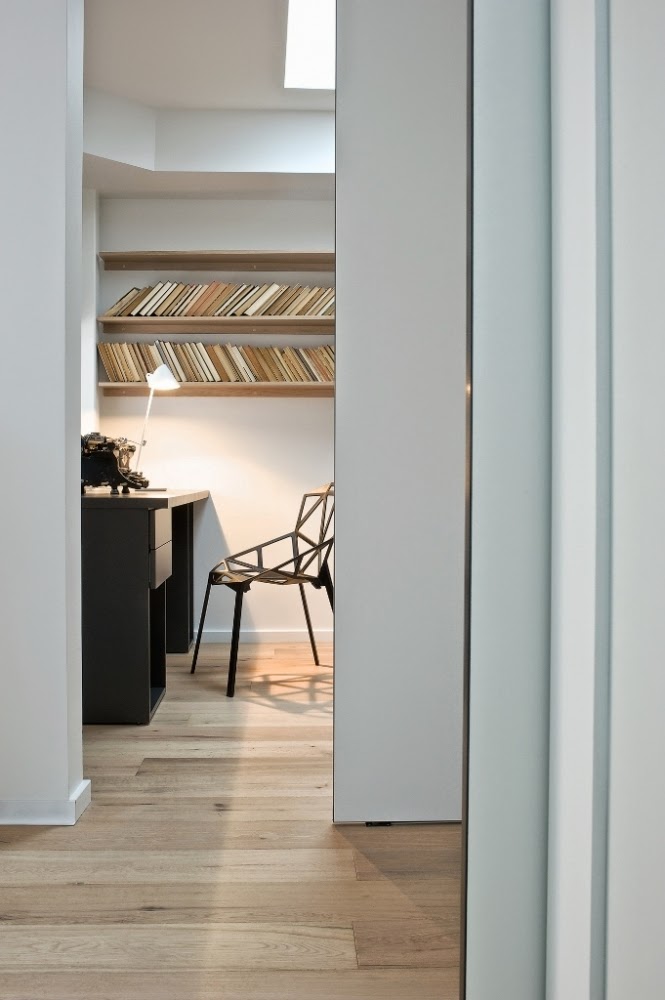 Designer furniture and bright self-contained parts – the basis of Scandinavian minimalism. In this apartment settled eminent things from famous designers in Europe: delicate chair by Konstantin Grcic Chair One in office furniture in the living room of Pianica.