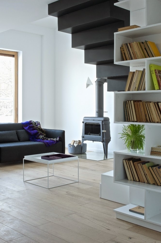 The white walls are the perfect backdrop for the designer furniture. Monochrome gamma finish makes it easy to change the mood in the house by bright accents. Here today purple tables and blankets, and tomorrow there will be yellow curtains and cushion covers – and the image of the house has changed almost beyond recognition.