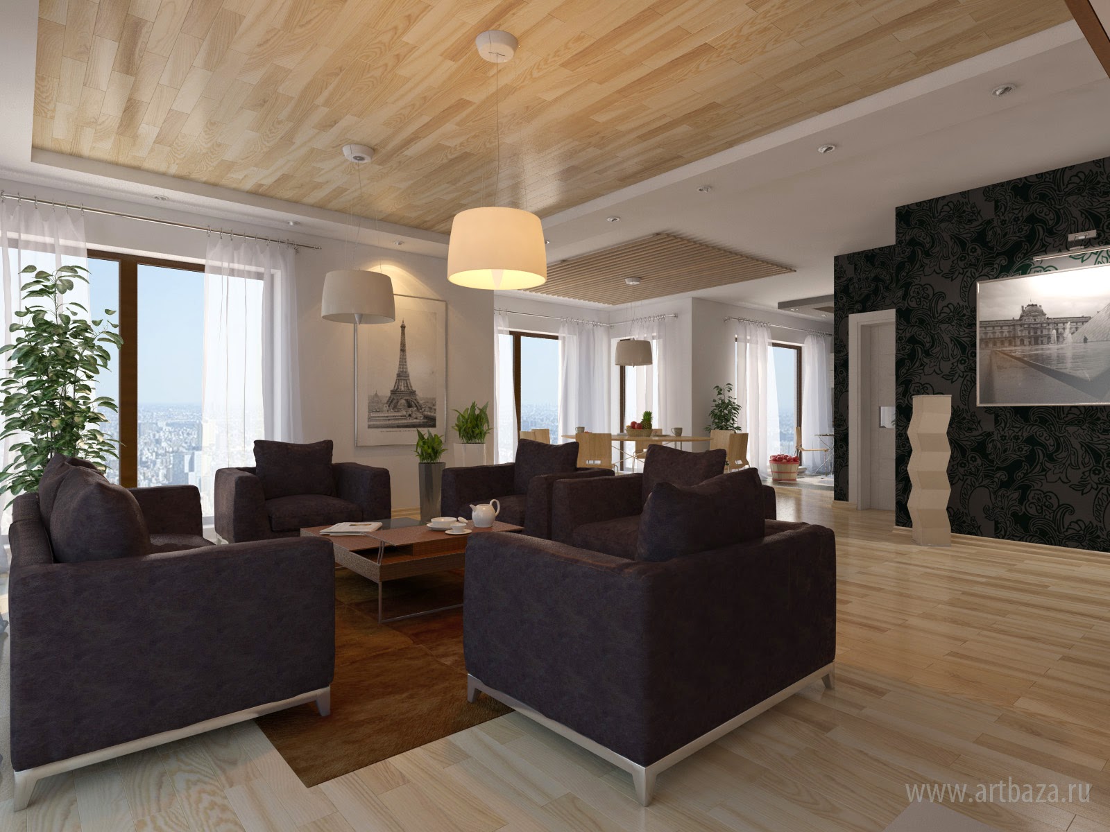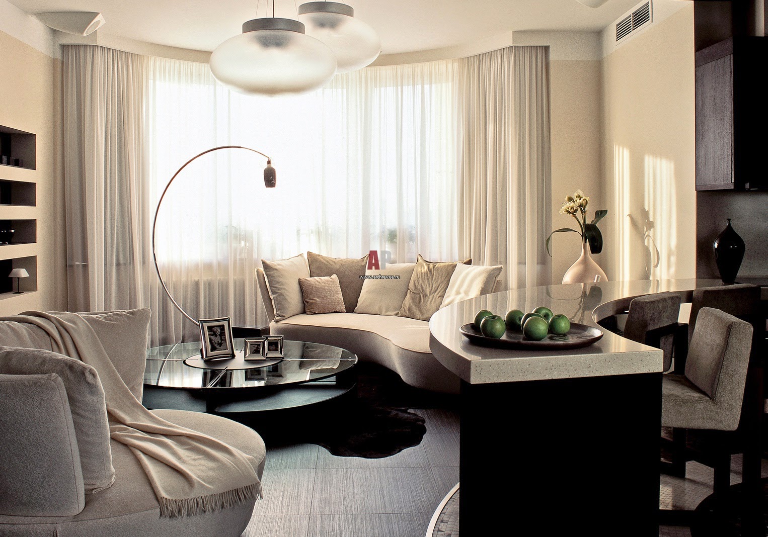 Modern style interior design is prone to volume, large in all embossed neglecting small, inexpressive, tatty.