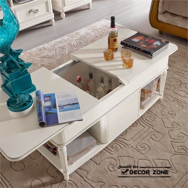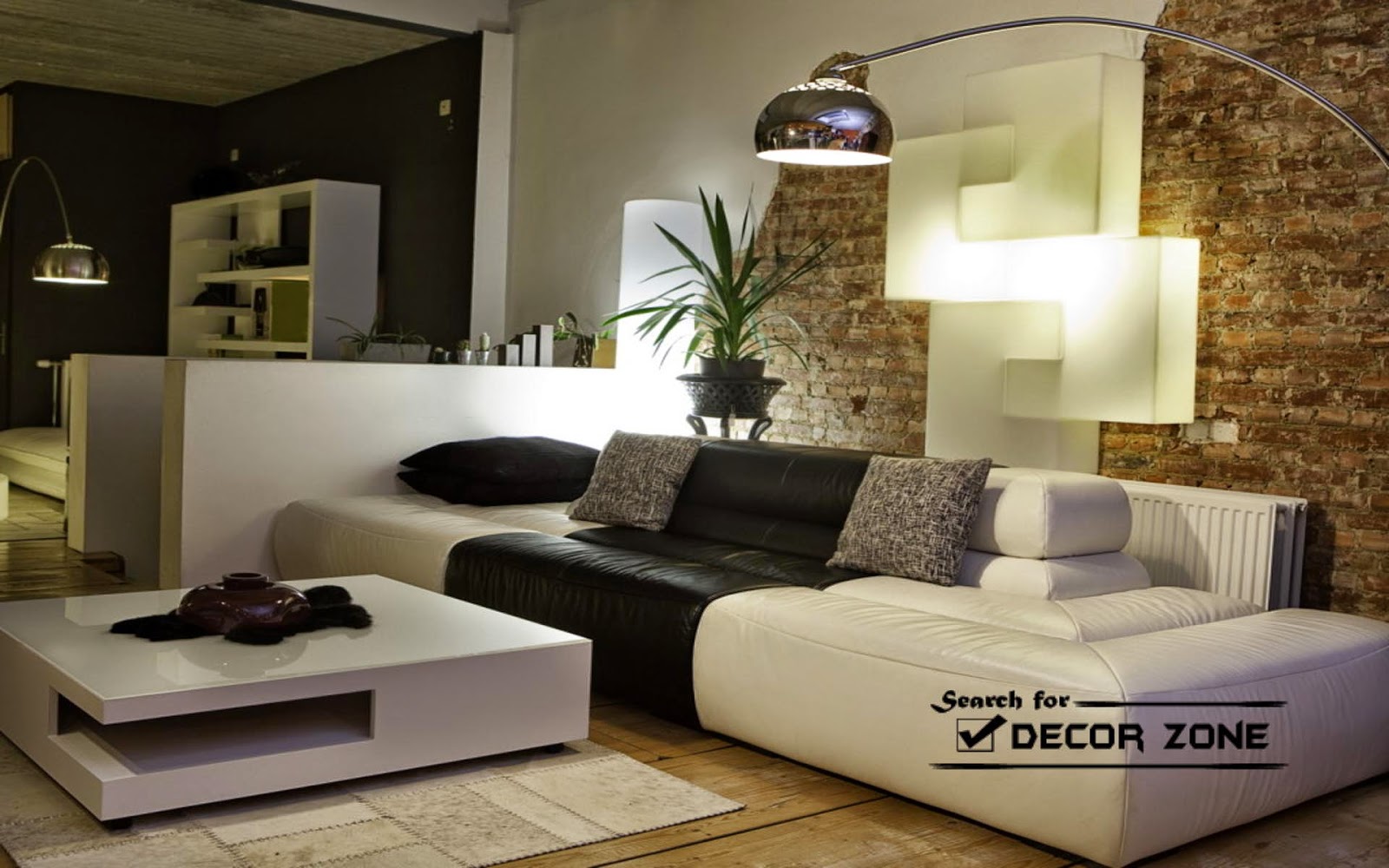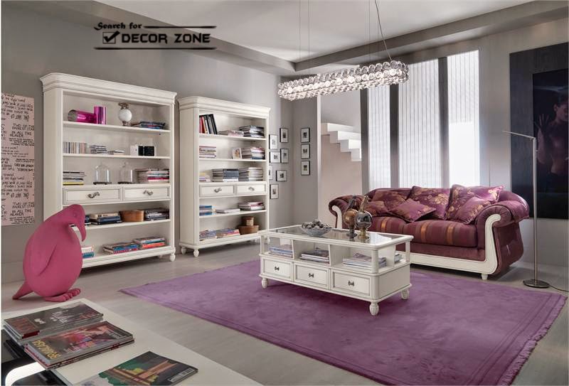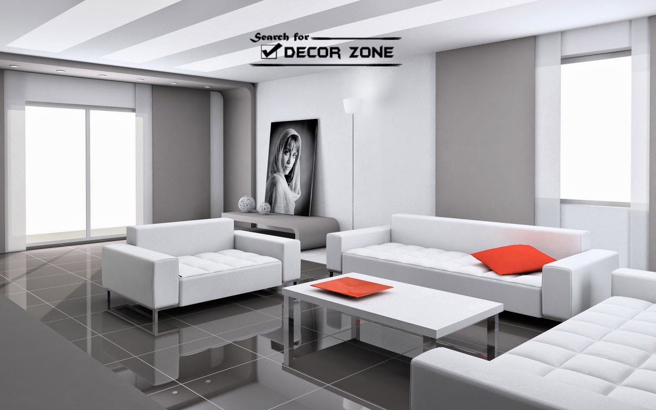 Consider the characteristics of white living rooms. White color in the interior can be present with varying intensity – solo or combined with other colors. In any case, the white interior just need to give volume. To do this, the color of furniture for the living room can be set off. For example, white sofas and dressers with glossy surfaces look better on the background of the walls beige or gray. A snow-white TV unit can be equipped with a black frame to get an interesting contrast. This living room furniture, as glass coffee tables or white shelving showcases supplemented illuminated and decorated with tinted satin silver or glass, make the interior sparkles like a diamond.
